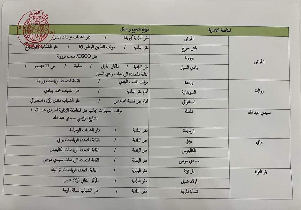 Afin de s’assurer que les bus arrivent au niveau du parking des Sablettes avant 8 heures du matin ; la wilaya d’Alger a appelé les citoyens à rejoindre les points de départ des bus tôt le matin ; suivant le programme indiqué.
