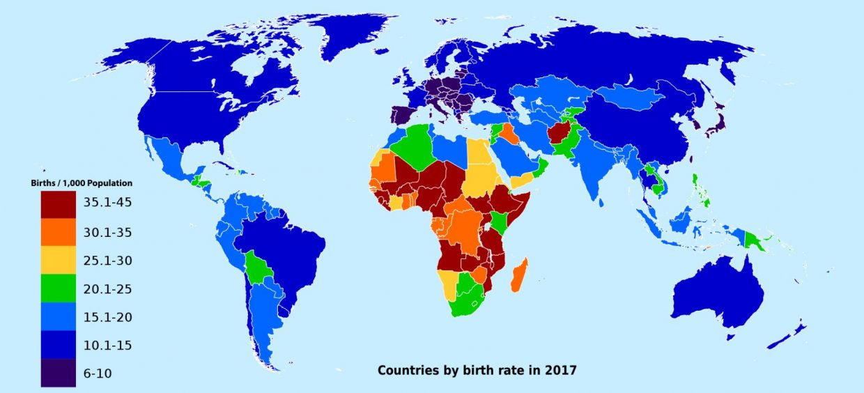 L’Algérie possède un taux de natalité moyen. Il se situe entre 20 et 25 naissances pour 1000 habitants.
