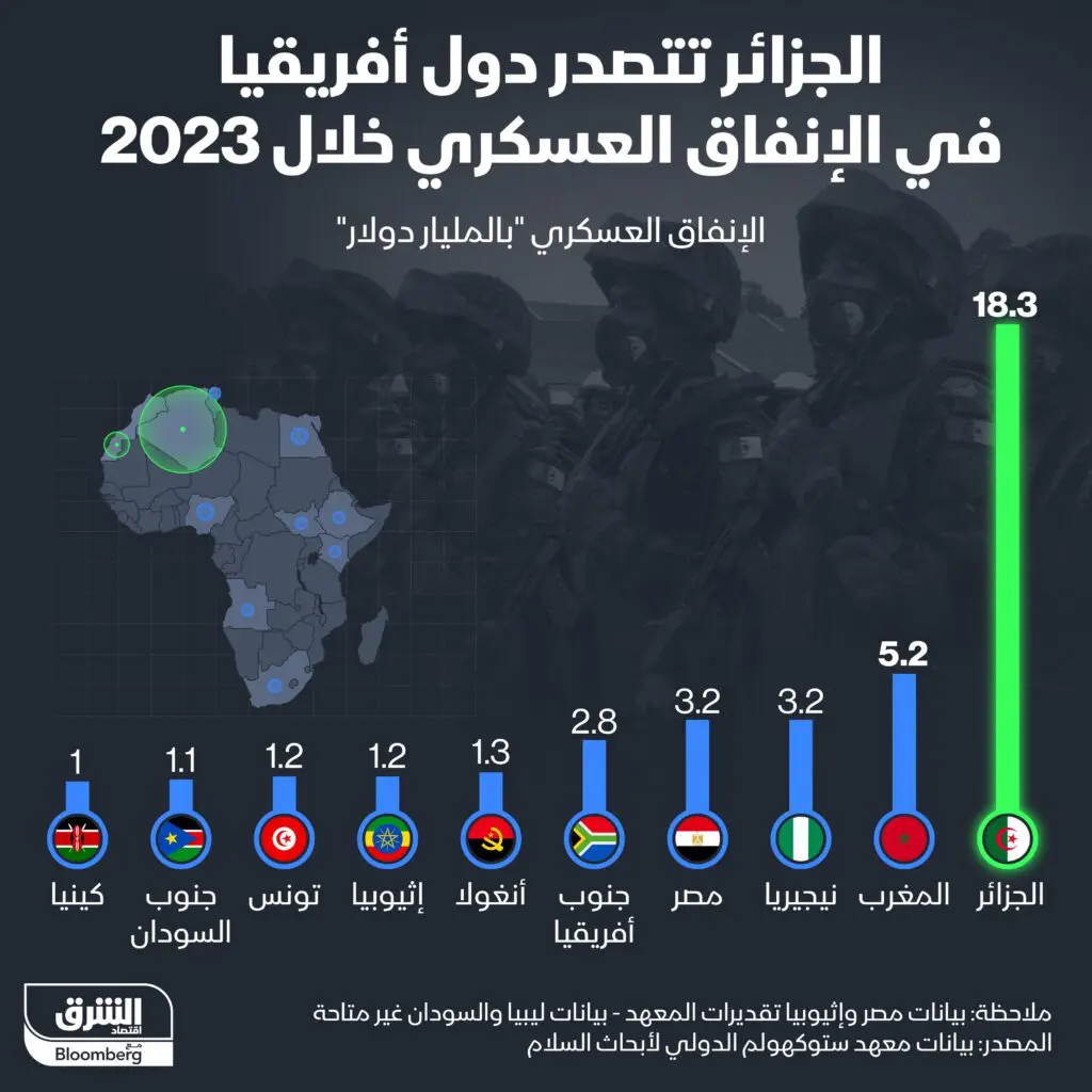 En 2023, l’Algérie s’est distinguée par ses dépenses militaires, devenant le pays ayant le budget de défense le plus élevé d’Afrique. Selon des rapports publiés récemment, les autorités algériennes ont considérablement augmenté leur budget alloué à l’armée et à la sécurité nationale, dépassant celui de ses voisins et de nombreux autres pays du continent.