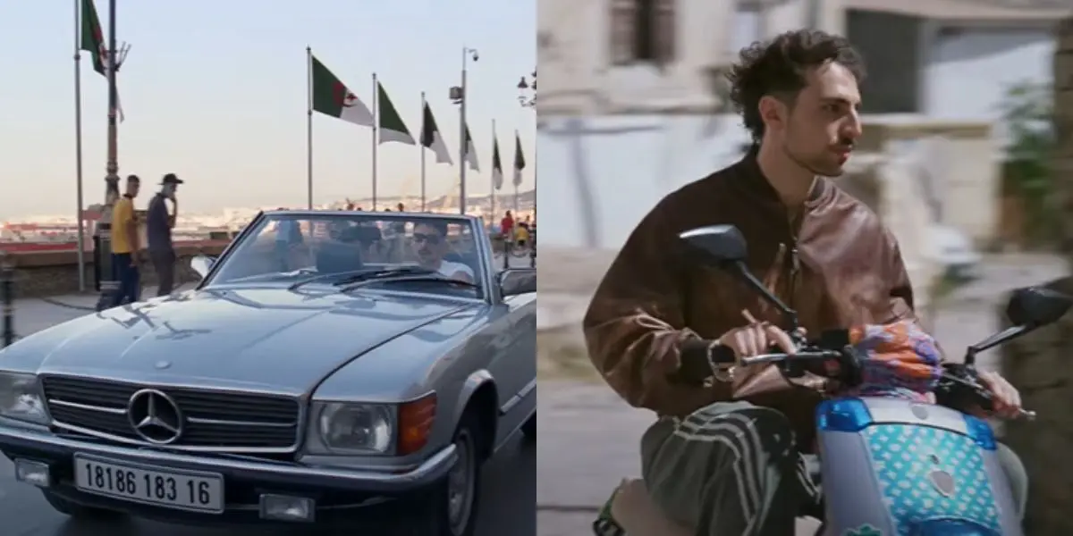 L’esthétique du clip repose également sur le choix des véhicules utilisés. Saint Levant apparaît tantôt sur une moto rétro, tantôt au volant d’une Mercedes ancienne, des modèles encore courants dans les rues algériennes.