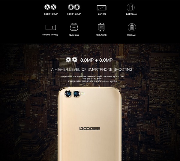 Le Doogee X30 est doté de deux caméras arrière avec un capteur de 8MP, chacune est présente pour obtenir les meilleures photos. La présence du deuxième capteur a pour fonction de mieux capturer la profondeur de l’image de sorte que les photos paraissent beaucoup plus nettes et beaucoup plus réelles. Par contre, le fait d’avoir un focus par une détection de phase, ceci capturera parfaitement le mouvement des objets à mettre au point. Ce type d’approche ne concerne normalement que les smartphones haut de gamme et Doogee a réussi à l’inclure dans ses Smatphones.