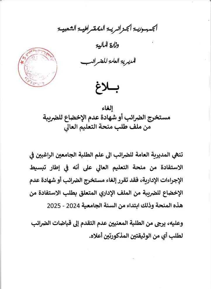 Dans ce même communiqué, la DGI a déclaré la suppression de l’extrait de rôle et du certificat de non-imposition dans les dossiers administratifs relatifs aux demandes de bourse d’études supérieures. Cette mesure vise à alléger le fardeau administratif des étudiants et à faciliter leur accès aux aides financières pour poursuivre leurs études.