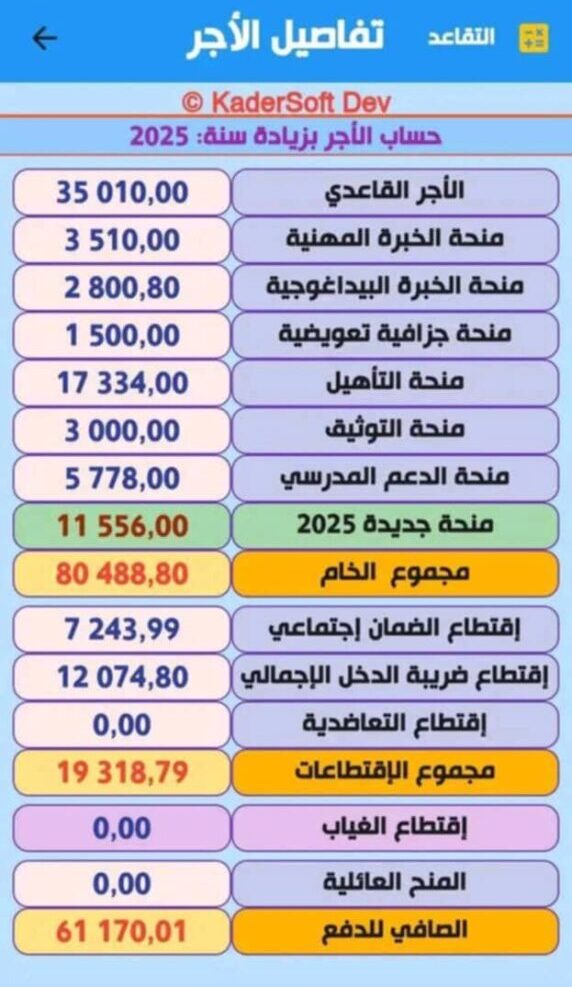 Au niveau du collège, les augmentations se situent entre 8 489 DA et 14 232 DA, portant les salaires entre 82 653 DA et 101 389 DA.