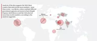 D’autre journalistes français, algériens ou encore marocains, ont été visés. À ce propos, le document souligne l’existence de pas moins de 10 000 numéros appartenant aux journalistes de ces pays cités, qui ont été sélectionnés en vue d’une surveillance potentielle. Selon une carte publiée The Guardian, 6000 journalistes algériens y figurent dans cette liste.