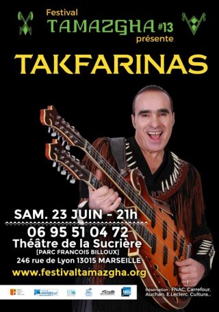 Artiste incontournable de la scène kabyle, Takfarinas est auteur, compositeur et interprète. En 2008, il était à l’affiche à Marseille dans le cadre de la 3ème édition du Festival Tamazgha et il sera de retour sur la scène marseillaise avec ce concert exceptionnel au Théâtre de la Sucrière à Marseille, pour la 13ème édition de notre festival.