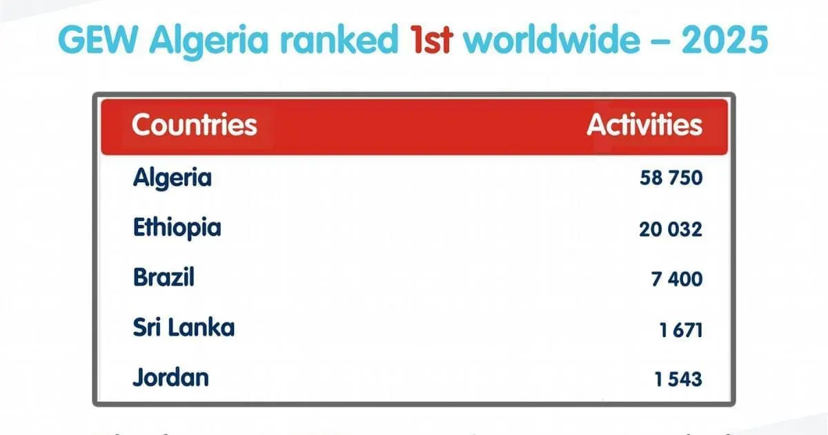 Le Global Entrepreneurship Network (GEN) vient de rendre son verdict : avec plus de 58 000 activités organisées, l’Algérie caracole en tête du classement mondial de la 17e édition de la Semaine mondiale de l’entrepreneuriat (GEW 2024-2025). Un record historique qui témoigne de la vitalité de l’écosystème national.