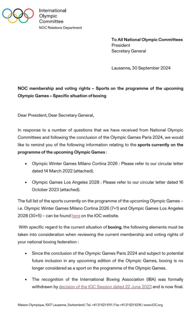Dans un communiqué publié jeudi dernier sur sa page Facebook officielle, le Comité olympique algérien a confirmé son retrait de la Fédération Internationale de Boxe (IBA).