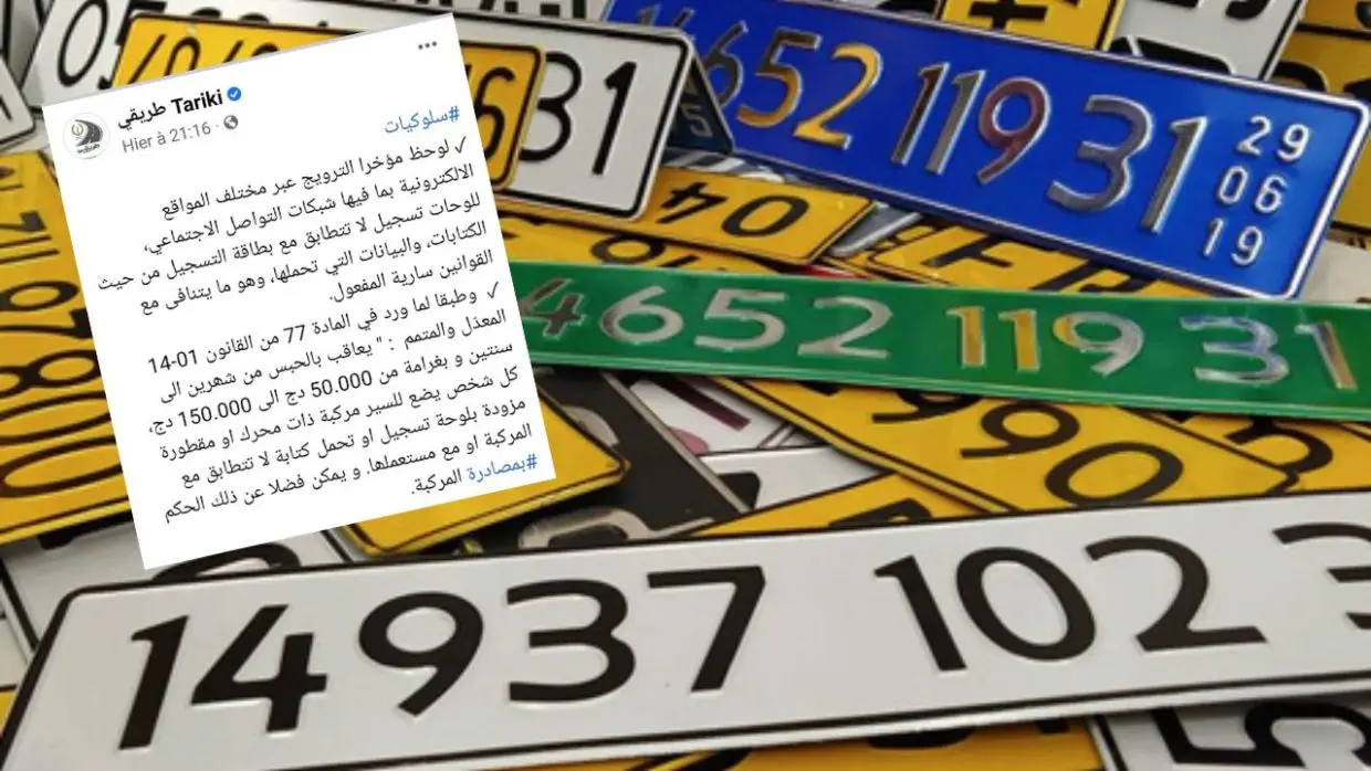 Par le biais d’une publication postée sur la page Facebook officielle du centre d’information et de coordination routière de la Gendarmerie nationale, « Tariki « , les services responsables ont fait savoir que les images qui circulent sur la Toile quant aux plaques d’immatriculation ne correspondent pas à la loi algérienne. En effet, ces images ont été massivement relayées par les internautes.