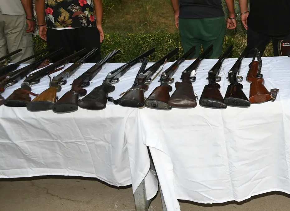 Le butin saisi comprend notamment 11 de calibre 16 mm, 7 pistolets automatiques de différents calibres (PA), 3 de calibre 12 mm, 2000 munitions de différents calibres, des accessoires d’armes, des treillis militaires, des armes blanches et des chargeurs.