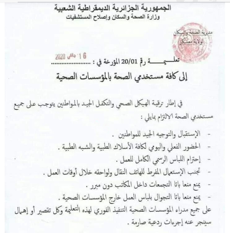 Le ministère de la Santé a chargé les directeurs des établissements de santé de mettre immédiatement en œuvre ces instructions.