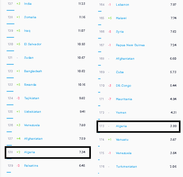 Selon les données du mois de novembre du site « Speedtest Global Index », l’Algérie se positionne à l’avant dernière place mondiale sur 130 pays en terme de « vitesse internet » mobile et 173e sur 176 pays concernant l’Internet fixe.