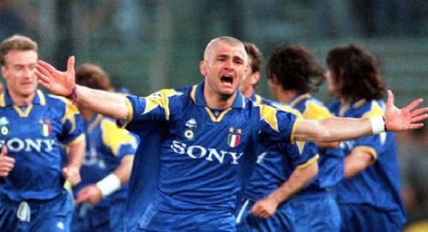 Finale de la ligue des champions 1996: la joie de Ravanelli après avoir ouvert la marque devant l’Ajax (©D.R.)