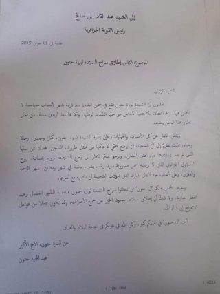 La famille de la SG du parti des travailleurs, Louisa Hanoune, a adressé une lettre à Abdelkader Bensalah pour qu’il intervienne dans son affaire. Sa famille demande sa libération à l’occasion de la fête de Aid El Fitr estimant que sa libération sera bénéfique pour toutes les parties.
