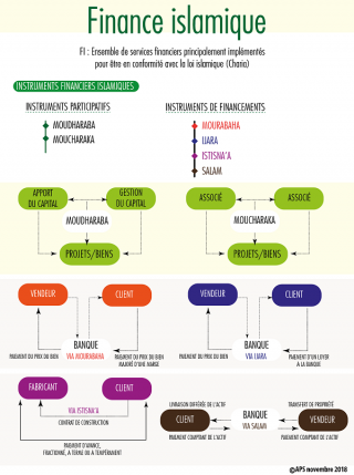 La finance participative, puisque telle est son appellation officielle et juridique, est une finance principielle, avec une éthique propre comme peuvent en avoir les finances verte, bleue ou solidaire. Les principes de la finance islamique sont au nombre de cinq (05) : (1) prohibition de l’usure (ribā), (2) prohibition des investissement illicites (jeux de hasard, activités en relation avec l’alcool, avec l’élevage porcin ou encore avec l’armement et l’industrie pornographique), (3) prohibition des investissements spéculatifs (maysir) et incertains (gharar), (4) partage des pertes et des profits (entre investisseurs et entrepreneurs) et (5) adossement de toute transaction sur des actifs tangibles (relevant de l’économie réelle).