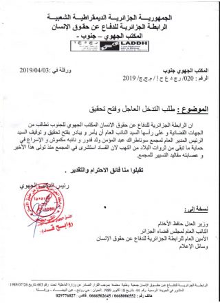 La LADDH appelle la justice d’ouvrir une enquête et ordonner l’arrestation d’Ould Kaddour et Salah Mekmouche accusé de corruption.