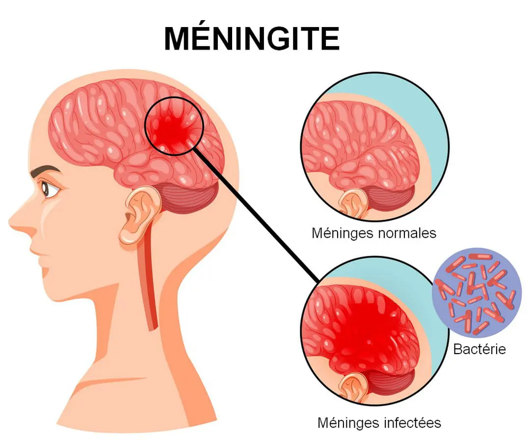 Néanmoins, la forme la plus redoutée reste la méningite bactérienne (méningocoque, pneumocoque ou Haemophilus influenzae). Cette dernière progresse avec une rapidité fulgurante et, par conséquent, exige une prise en charge immédiate. L’absence de traitement rapide cause des séquelles neurologiques irréversibles (surdité, dommages cérébraux) ou le décès.