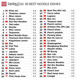 Dans le classement de Taste Atlas, la Rechta algérienne occupe la septième des meilleurs plats de nouilles. En revanche, les premières places sont occupées par des spécialités japonaises très connues. Notamment, Khao Soi thaïlandais qui se retrouve à la tête de ce classement.