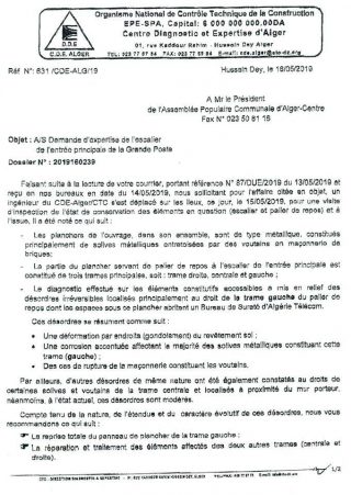 Selon la Wilaya d’Alger , pour la sécurité des manifestants, des mesures ont été prises, pour les empêcher d’utiliser les escaliers de la grande poste car des fissures auraient été constatées sur les escaliers, en raison du surpoids qu’ils supportent depuis le début du Hirak.