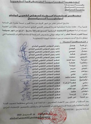 L’assemblée populaire communale de Cherchell, wilaya de Tipaza refuse à leur tour de procéder à la révision des listes électorales de l’élection présidentielle prévue pour le 04 juillet 2019.