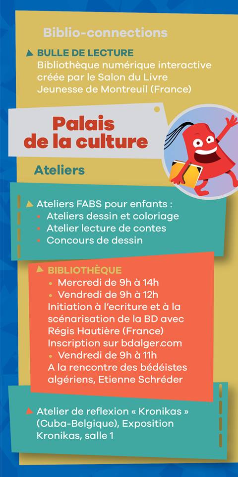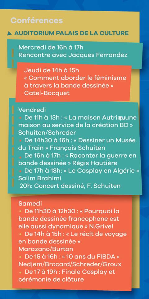 En plus des oeuvres français, la bande dessinée cubaine, belge, arabe et africaine, les travaux des jeunes auteurs algériens, lauréats des éditions précédentes, sont également au programme de cette 10e édition. Alors depuis ses débuts, 30 à 40 pays prenaient part à cet évènement, le festival, contraint à l’autofinancement depuis deux ans, a encore cette année, réduit la participation internationale à une vingtaine.