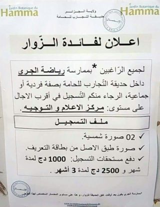 Le jardin botanique d’El Hamma propose une offre destinée aux personnes qui désirent faire du footing dans le jardin.