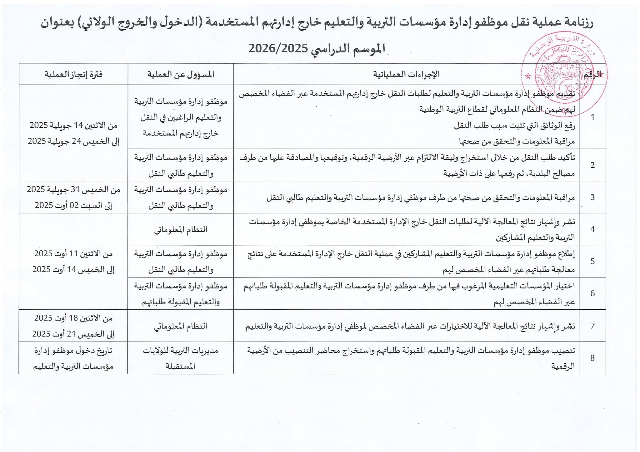 L’opération s’inscrit dans le cadre de la gestion des ressources humaines pour l’année scolaire 2025-2026, dans la limite des postes vacants disponibles dans les wilayas souhaitées. Le ministère encourage l’anticipation et la planification pour assurer une répartition optimale des effectifs.
