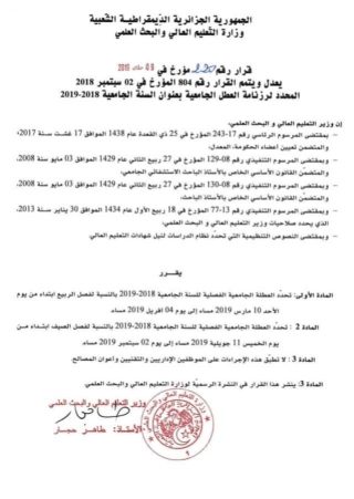 Le ministère de l’enseignement supérieur décide d’avancer les vacances du « printemps » !