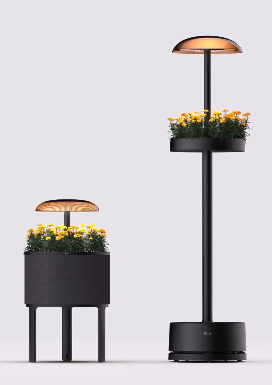 Outre ce modèle « lampe sur pied », LG a aussi dévoilé une version compacte et polyvalente, inspirée de la nature et prenant la forme d’une table d’appoint. Ce modèle esthétique et pratique s’adresse aux utilisateurs souhaitant intégrer un espace vert dans un intérieur moderne et fonctionnel.