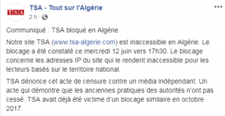 Le site d’information TSA (Tout Sur l’Algérie ) est inaccessible depuis mercredi soir aux utilisateurs de l’Internet situés en Algérie.