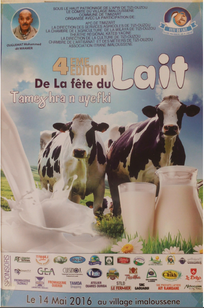Pour se 14 mai le comité de village en collaboration avec l’APW de TIZI OUZOU et la commune de TIMIZART ont organisé la quatrième édition de la fête du lait en rendant hommage à monsieur « OUGUEMAT MOHAMMED dit MAAMAR » ancien agricole de cette région.