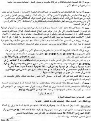 Le responsable de cette association, Tebbouche Mohamed, doit comparaître le 19 février 2019 au tribunal administratif de la wilaya de Skikda, selon une requête du procès qui lui a été transmise par voie de huissier.