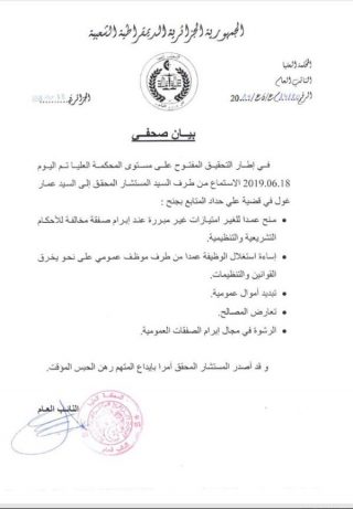 Dans un communiqué publié ce jeudi, le Procureur général près la Cour Suprême revient sur chefs d’accusation retenus contre l’ancien ministre des travaux publics, Amar Ghoul dans l’affaire d’Ali Haddad.