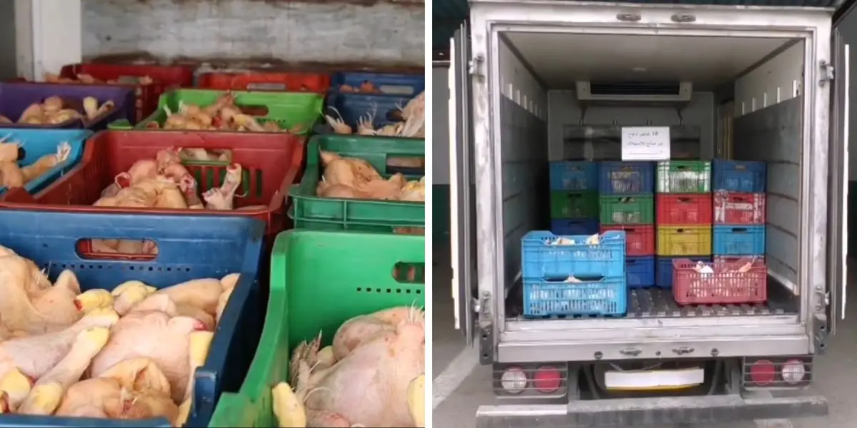 Lors de l’inspection du véhicule, les gendarmes ont découvert plusieurs caisses en plastique contenant du poulet abattu, toujours avec ses viscères, entreposées dans le coffre de la camionnette.