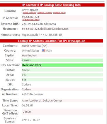 Le site de l’agence Algérie Presse Service (aps.dz) est lui localisé à Kansas City aux Etats Unis chez l’hébergeur Codero. Elmoudjahid.dz, le site du quotidien public, anti-impérialiste et très patriotique est lui aussi situé dans un data center à Chicago.