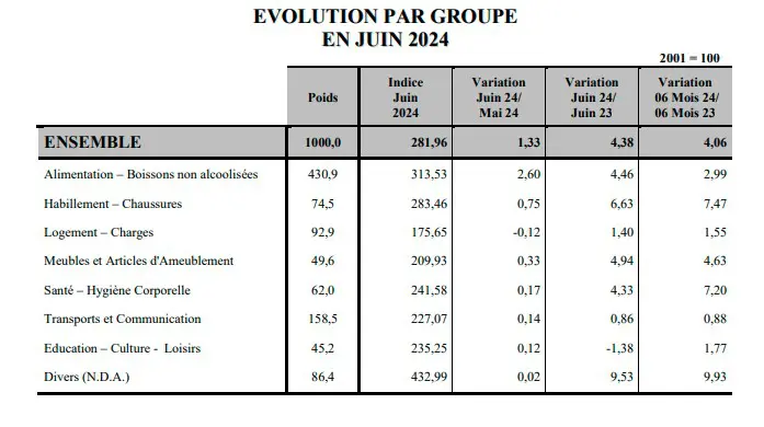 Si les produits alimentaires sont les principaux responsables de l’accélération de l’inflation, les prix des produits manufacturés non alimentaires (Meubles, habillement, chaussures…) et des services (Transport, communication…) ont également augmenté, bien que de manière plus modérée. En juin, les prix des produits manufacturés ont progressé de 0,2 % et ceux des services de 0,1 %.