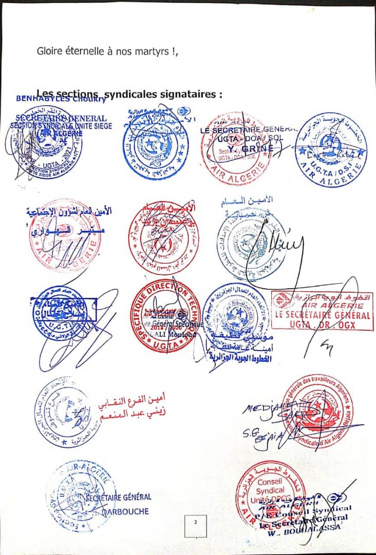 Les Sections Syndicales UGTA d’Air Algérie, annoncent leurs soutient au mouvement populaire contre le prolongement du 4e mandat de Bouteflika