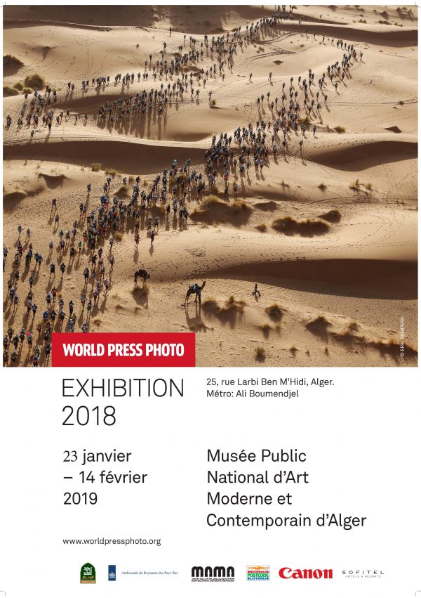 L’exposition «World Press Photo 2018» aura lieu du 23 janvier au 14 février 2019 au Musée Public National d’Art Moderne et Contemporain à Alger (MAMA). L’entrée est gratuite et le musée est ouvert tous les jours de 10h jusqu’à 18h sauf le vendredi. La conférence de presse aura lieu le 22 janvier à 11 :00.