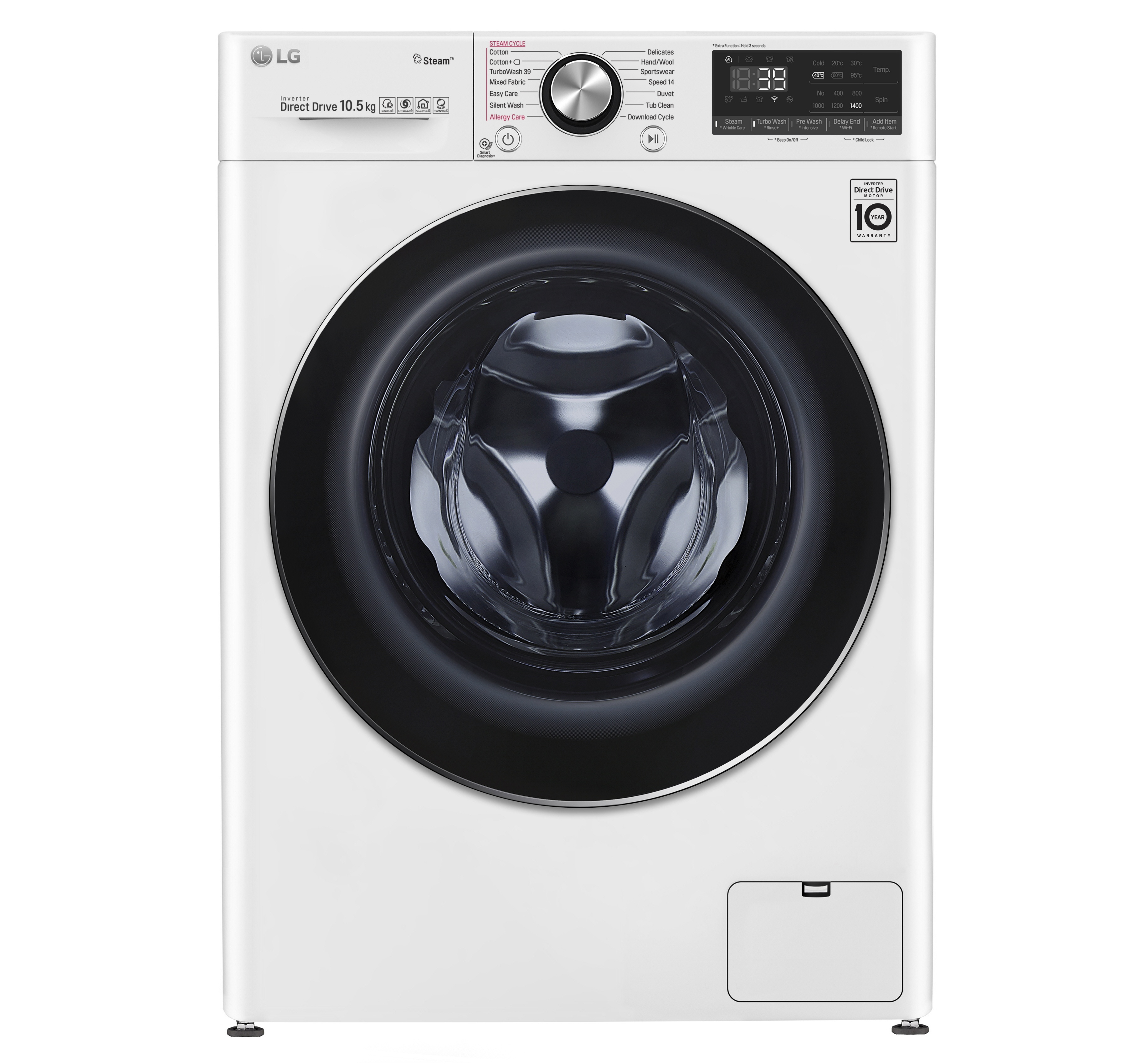 Grâce à ses jets d’eau, la machine à laver TurboWash 360 AI DD pulvérise les détergents à lessive dans quatre directions différentes pour obtenir des vêtements nettoyeur. Steam + (Steam Plus) complète cette solution de blanchisserie complète, neutralisant 99,9% des allergènes grâce à un cycle de stérilisation spéciale et supprimant 30% des plis gênants via Wrinkle Care.3