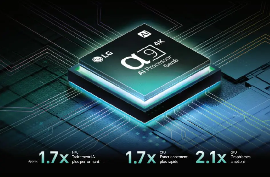 Avec sa nouvelle gamme OLED evo 2025, LG franchit un nouveau cap technologique. L’objectif reste clair : offrir une expérience sensorielle toujours plus riche et fidèle à la vision des créateurs. Grâce au processeur de dernière génération α9 AI Gen8, chaque image gagne en netteté, en fluidité et en réalisme. Ce processeur embarque des composants optimisés, dont un NPU plus performant pour l’intelligence artificielle, un CPU plus rapide, et un GPU aux graphismes améliorés.