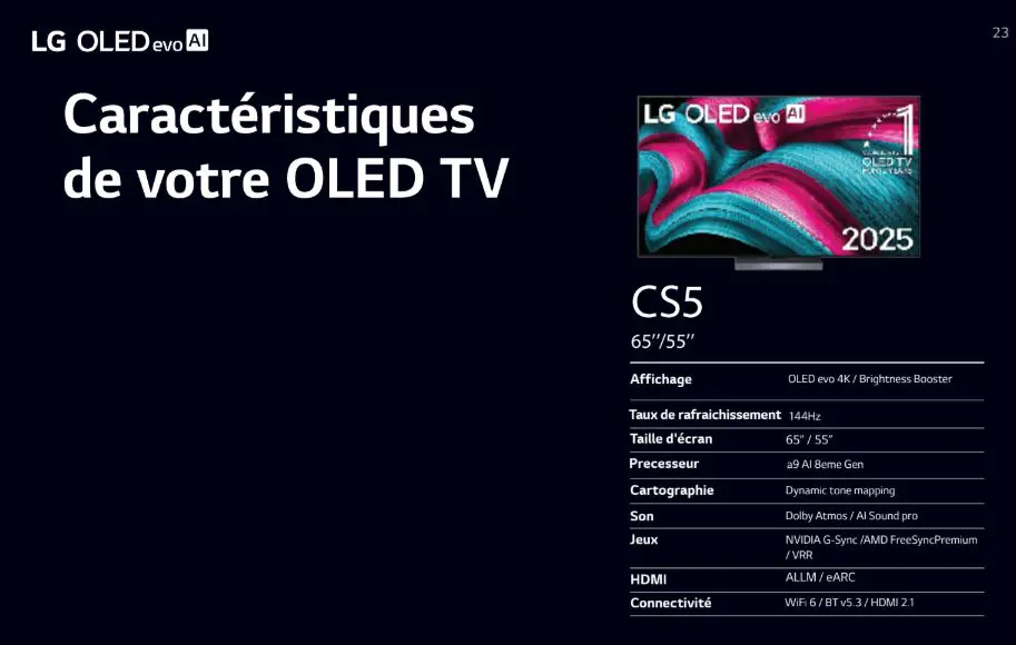 La technologie Brightness Booster vient renforcer la luminosité des écrans, pour des couleurs éclatantes même dans les scènes les plus lumineuses. Les téléviseurs OLED de LG conservent leur signature : un noir absolu, rendu possible par les pixels auto-émissifs capables de s’éteindre complètement, révélant ainsi un contraste infini et des détails insoupçonnés.