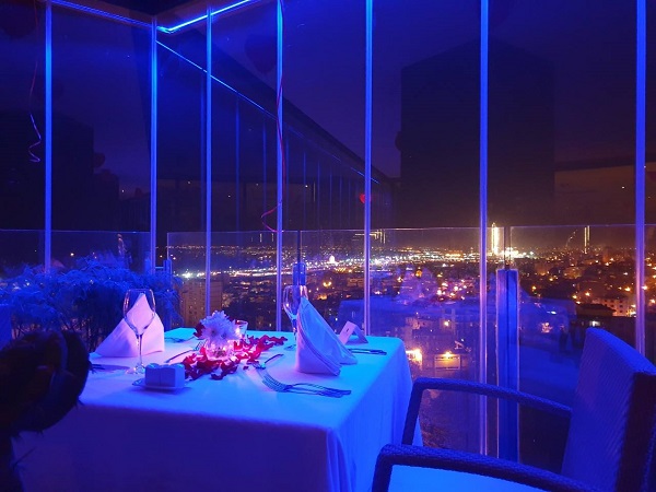 L’hôtel dispose de deux restaurants : « La baie » , au 7e étage, avec une vue panoramique sur la Baie d’Alger, destinée aux buffets raffinés, et « Fusion » , (niveau 0), pour des mets légers, selon la demande de la clientèle. Un espace bien-être et spa est proposé au 6e étage, avec hammam, sauna, salle de gym et piscine couverte.
