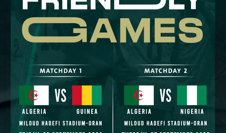A noter que la FAF a confirmé la tenue des deux matchs amicaux lors du prochain stage en mois de septembre. Les protégés de Djamel Belmadi affronteront la Guinée et le Nigéria. Ils auront lieu respectivement le 23 et le 27 septembre prochains au nouveau stade d’Oran » Miloud Hadefi ». Le coup d’envoi des deux matchs est fixé à 20h.