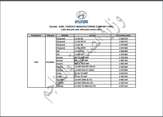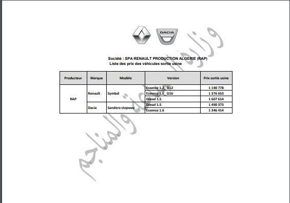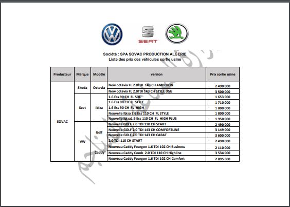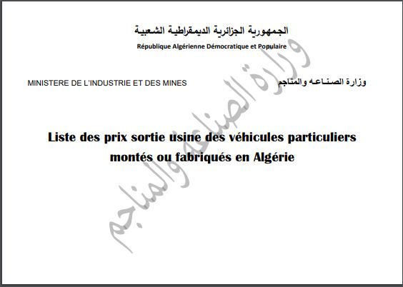 Dans un document publié sur son site web, le ministère de l’industrie est des mines a révélé les différents prix « sortie usine » des véhicules montés en Algérie.