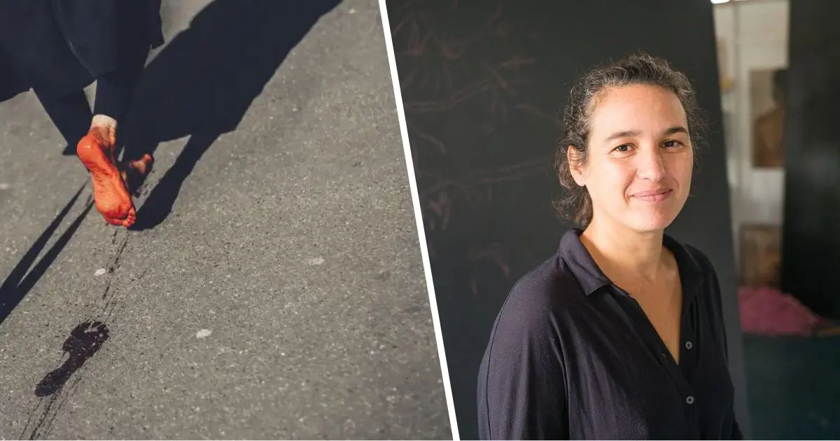 Paris, le 16 mars 2024 – L’artiste franco-algérienne Dalila Dalléas Bouzar a réalisé une performance poignante à Paris. Pieds nus et ensanglantés, elle a marché de la Place de la Bastille à la Place de la République. Son message ? Dénoncer les atrocités du conflit israélo-palestinien et rendre hommage aux victimes innocentes.