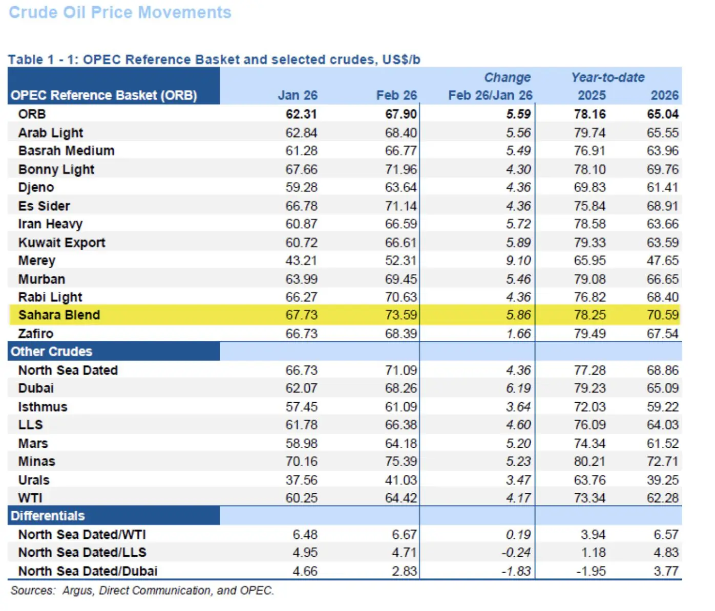 Selon le dernier rapport mensuel de l’Organisation des pays exportateurs de pétrole (OPEP), dont les données ont été compilées ce jeudi, le Sahara Blend a atteint un prix moyen de 73,59 dollars le baril en février. C’est une augmentation de 5,86 dollars par rapport au mois de janvier, où il s’établissait à 67,73 dollars. Cette performance propulse le brut algérien en tête du classement des huiles africaines et arabes, devançant des références comme le libyen Es Sider ou le bonny light nigérian.
