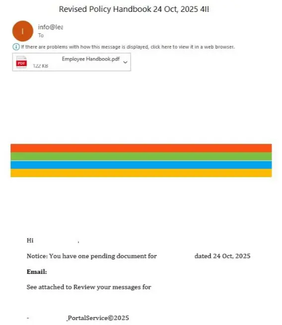 Un e-mail de phishing invitant l’utilisateur à ouvrir le PDF en pièce jointe.