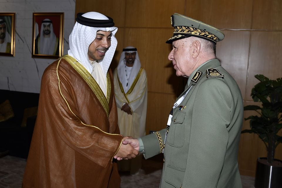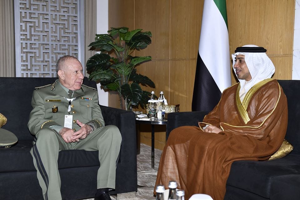 A l’issue et au palais des expositions, Chengriha était à la tête des Chefs des délégations reçues par le superviseur de cette cérémonie, Cheikh Mansour Ben Zayed Al-Nahyane, Vice-président du Conseil des Ministres, Ministre des Affaires Présidentielles de l’Etat des Emirats Arabes Unis, à qui Monsieur le Général-Major a transmis les salutations du chef de l’Etat Abdelmadjid Tebboune, qui tient énormément à promouvoir la coopération fraternelle entre les deux pays, à la hauteur des aspirations des « deux peuples frères ».