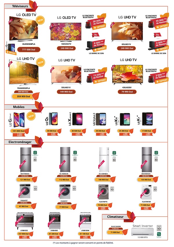 Du 04 octobre au 03 novembre 2018, LG Electronics Algérie annonce sa promotion d’automne à travers son réseau de showrooms.