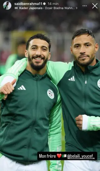 Cela a fait tellement de bruit depuis la soirée d’hier qu’il a suscité la réaction de Benrahma. Ce dernier a publié une nouvelle story en compagnie de Belaïli et a écrit dessus : « Mon frère ». Voilà ce qui est désormais clair, net et précis. Il n’y a aucun différend entre les deux joueurs et tout ce qui a été dit à propos de leur relation, n’est qu’une rumeur.