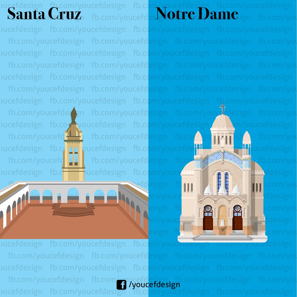 Sur sa page Facebook , Youcef s’est appliqué à reproduire des croquis semblables, cette fois-ci pour comparer sa ville natale avec la capitale algérienne.